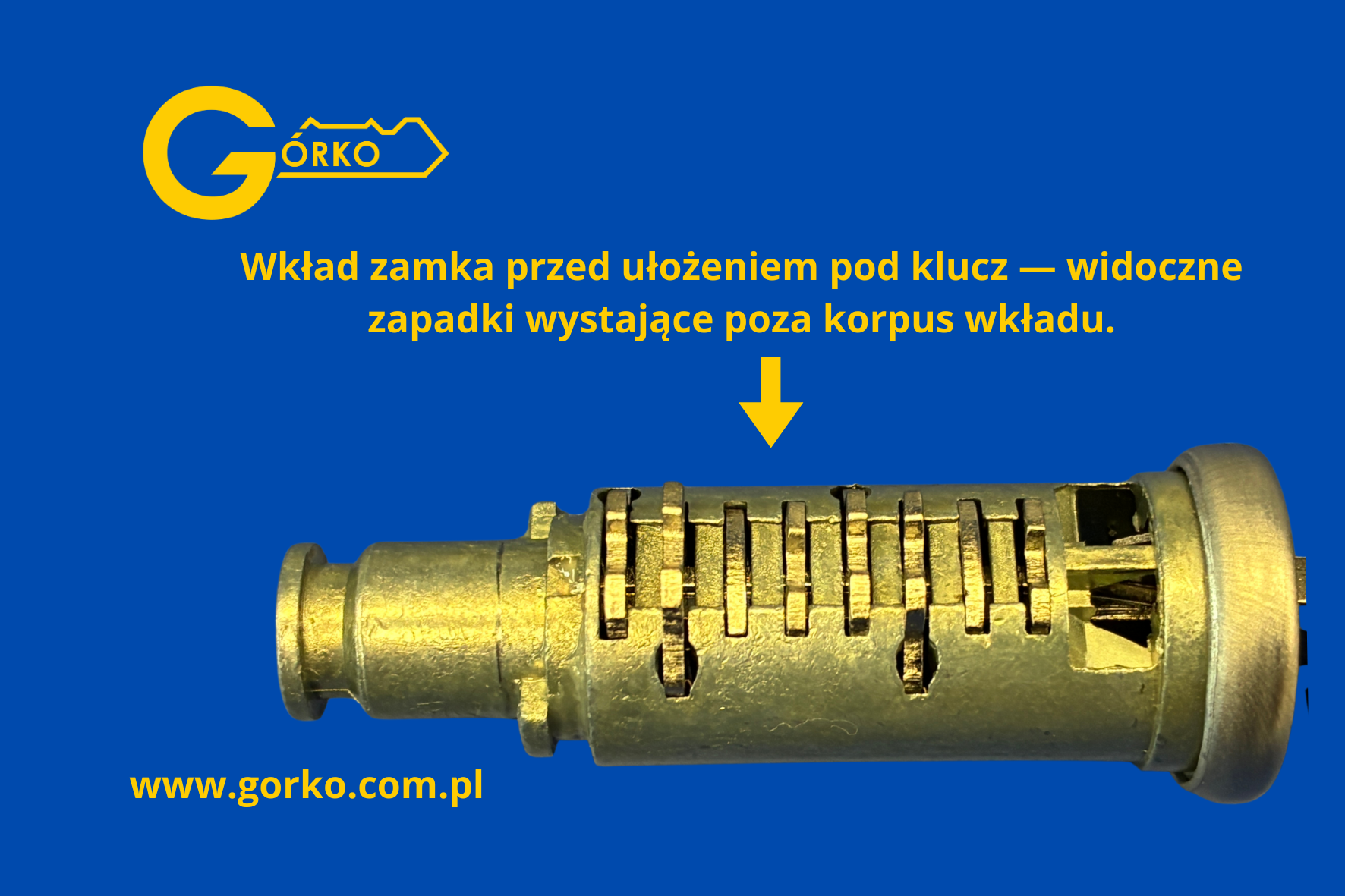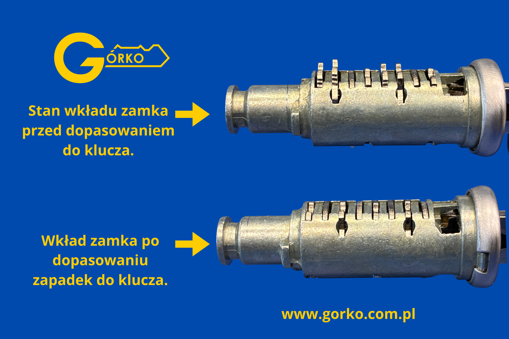 Rozwiązaniem jest usługa dopasowania zapadek do Twojego klucza. Polega ona na precyzyjnym przełożeniu lub wymianie pinów w zamku tak, aby współpracował on z Twoim oryginalnym kluczem — nawet jeśli zamek pochodzi z innego auta.