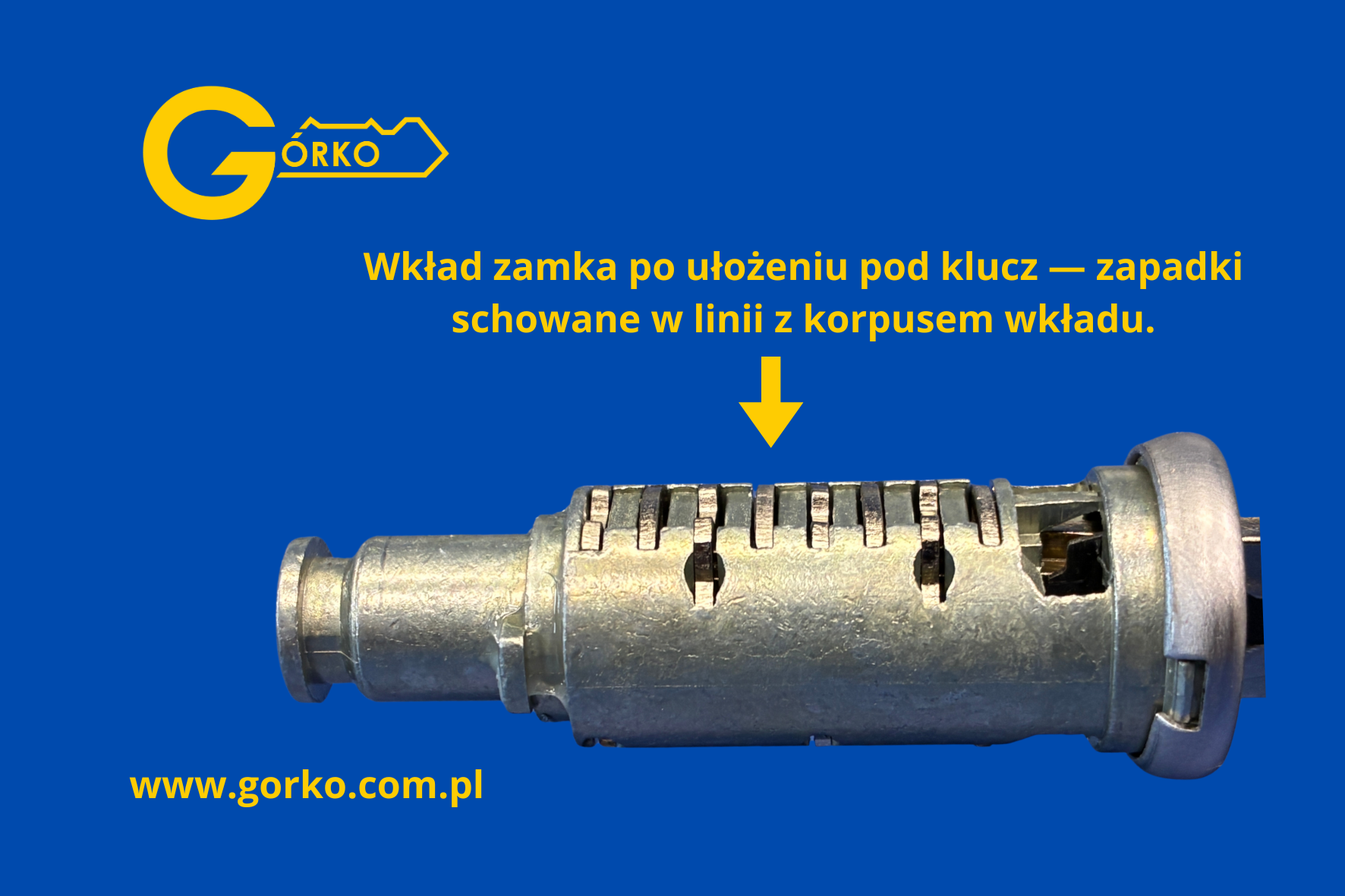 Wewnątrz każdego zamka znajduje się zestaw zapadek (tzw. pinów), które muszą idealnie pasować do nacięć na kluczu. Gdy do wkładu zamka włożymy klucz od innego auta, zamek po prostu nie zadziała.