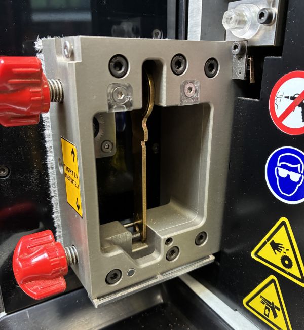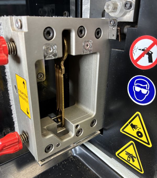 Do wykonania tego zadania wykorzystaliśmy precyzyjną frezarkę X-CUT firmy ANSAN. Maszyna ta doskonale sprawdza się w tego typu realizacjach – umożliwia dokładne odwzorowanie oryginalnego klucza. Dzięki niej mogliśmy sprawnie i bezpiecznie dorobić nowy komplet kluczy pasujących do stacyjki maszyny IDEC, zachowując pełną funkcjonalność i jakość oryginału.