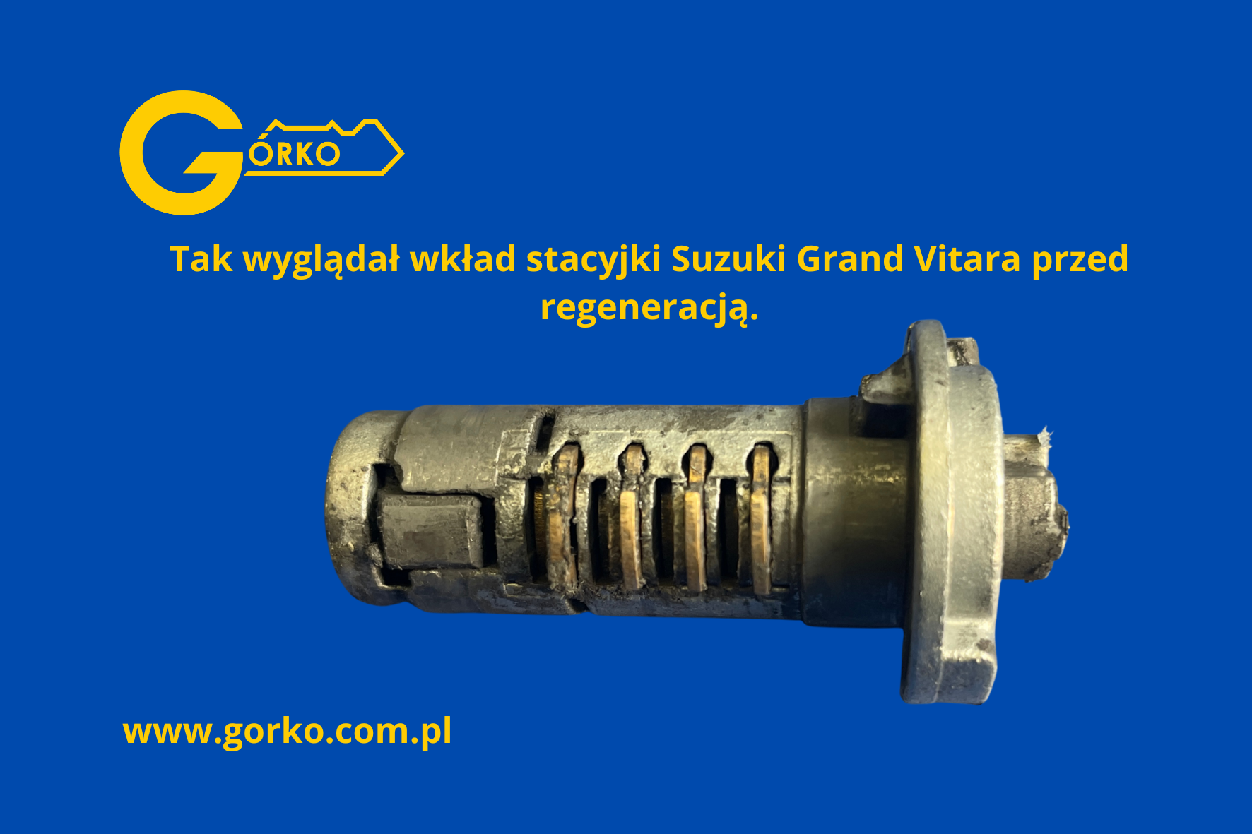 Po dostarczeniu do nas stacyjki ustaliliśmy, że zapadki są mocno zużyte i zablokowały mechanizm, uniemożliwiając przekręcenie kluczyka. To częsta usterka w Suzuki Grand Vitara, zwłaszcza w autach intensywnie eksploatowanych.