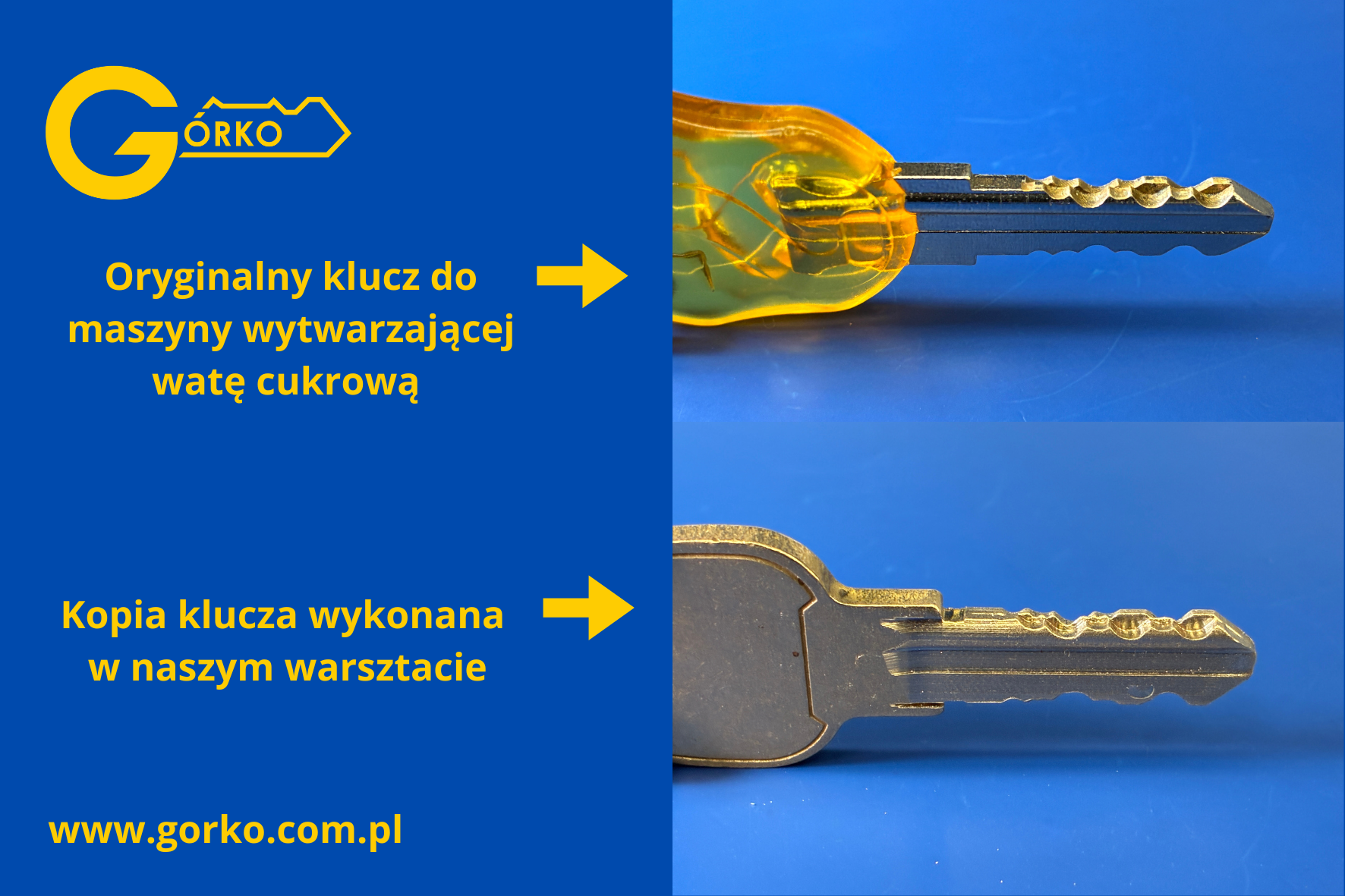 Niedawno zgłosił się do nas przedsiębiorca, który zakupił 20 maszyn do produkcji waty cukrowej sprowadzonych z Chin. Każda z maszyn była zabezpieczona zamkiem – co zrozumiałe – jednak wszystkie otwierały się jednym, specyficznym kluczem. Klucz ten okazał się na tyle nietypowy, że żaden lokalny ślusarz nie był w stanie go dorobić, a sam producent nie przewidywał dostawy zapasowych egzemplarzy.