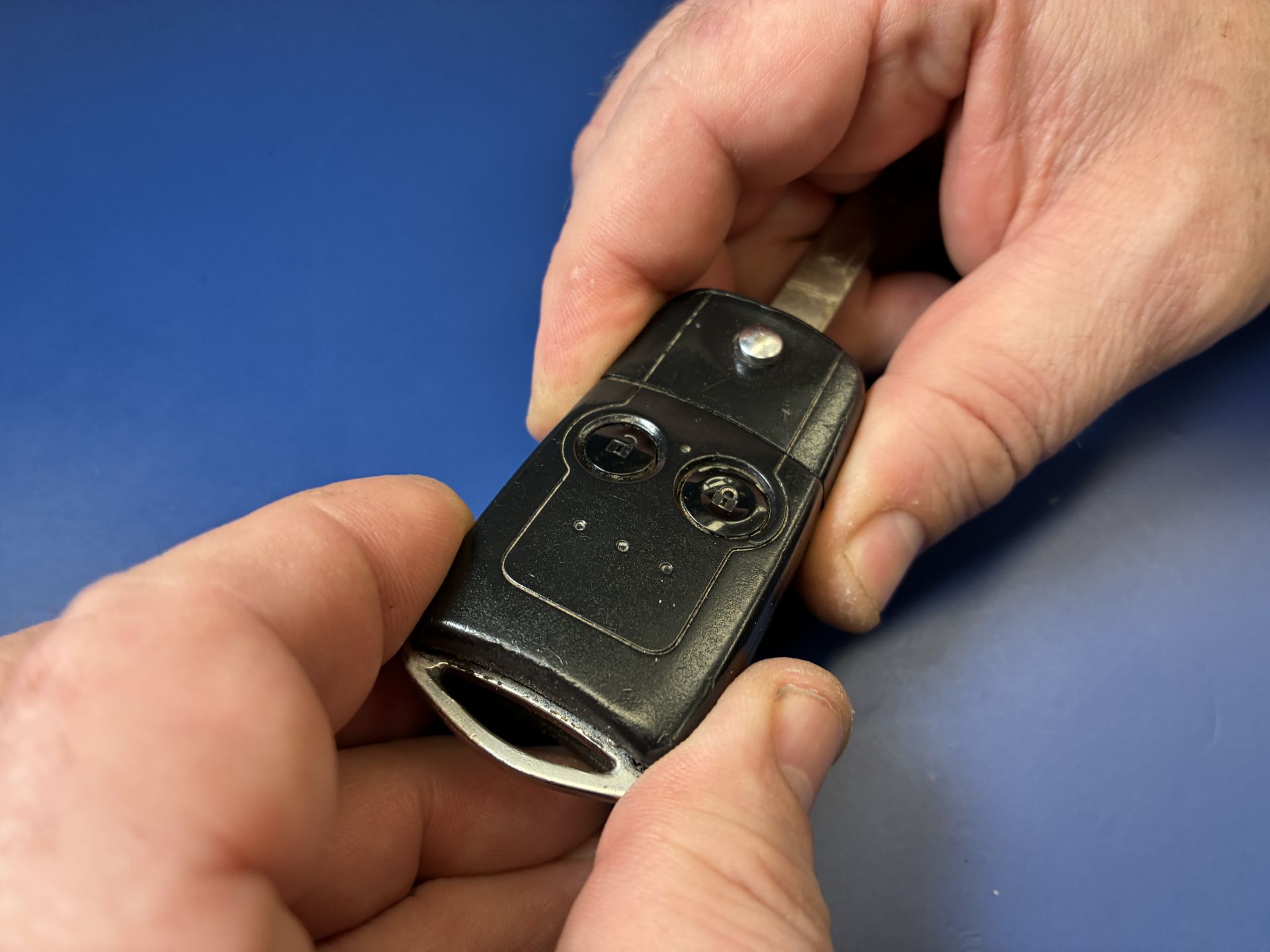 Ostatnio do naszego serwisu zgłosił się klient, właściciel Hondy Civic VIII generacji z 2013 roku. Zgłaszał problemy z działaniem kluczyka – przyciski przestały reagować, obudowa była mocno zużyta, a grot wypadł z obudowy i był nie do użytku. Klucz nie tylko wyglądał na zużyty, ale przede wszystkim przestał pełnić swoją podstawową funkcję – komfortowego i bezproblemowego uruchamiania pojazdu.