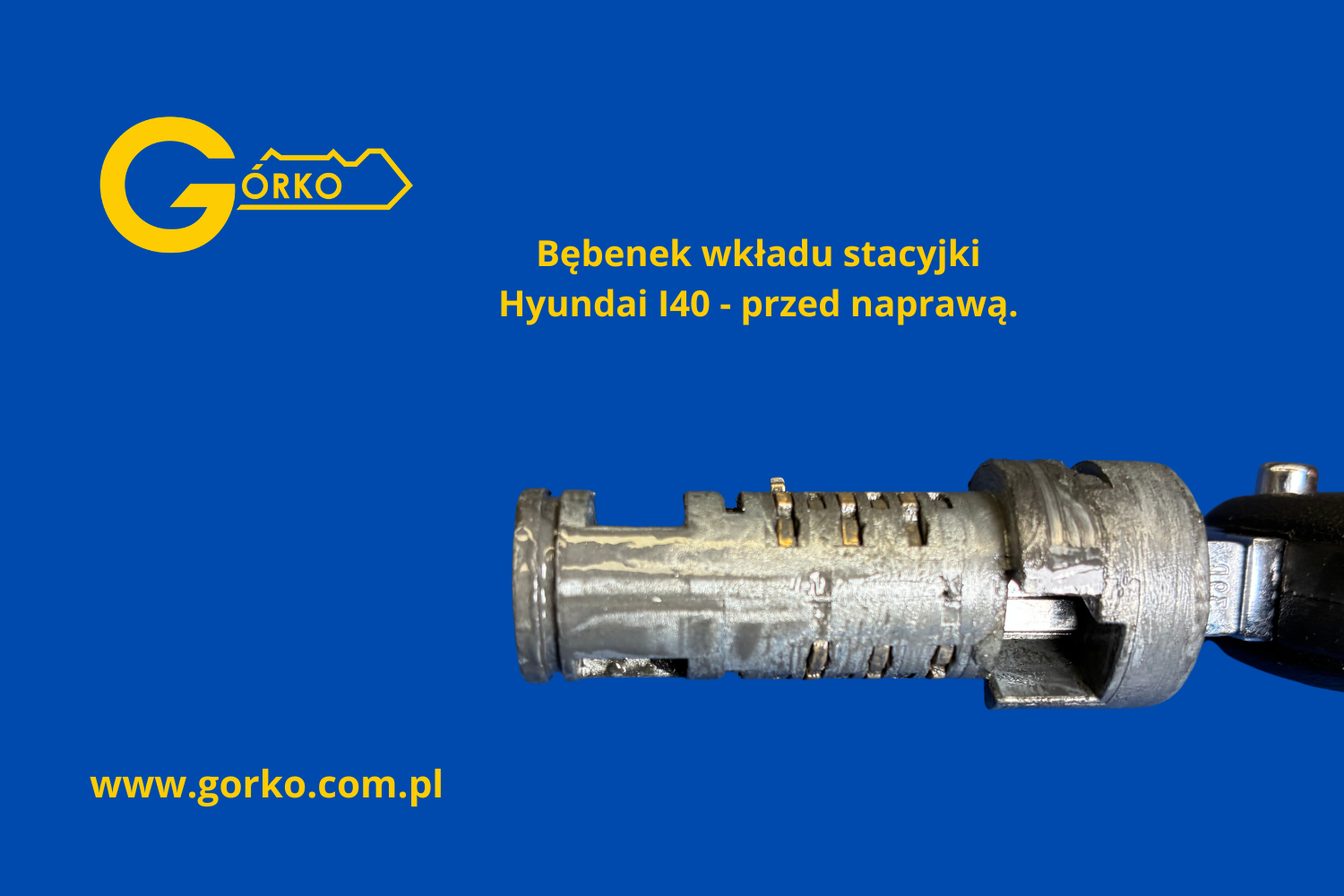 Do naszego warsztatu w Olsztynie trafiła zacinająca się stacyjka do Hyundai i40 wraz z dwoma kluczami. Klient zgłaszał problemy z przekręcaniem stacyjki oraz zauważalne zużycie jednego z kluczy.