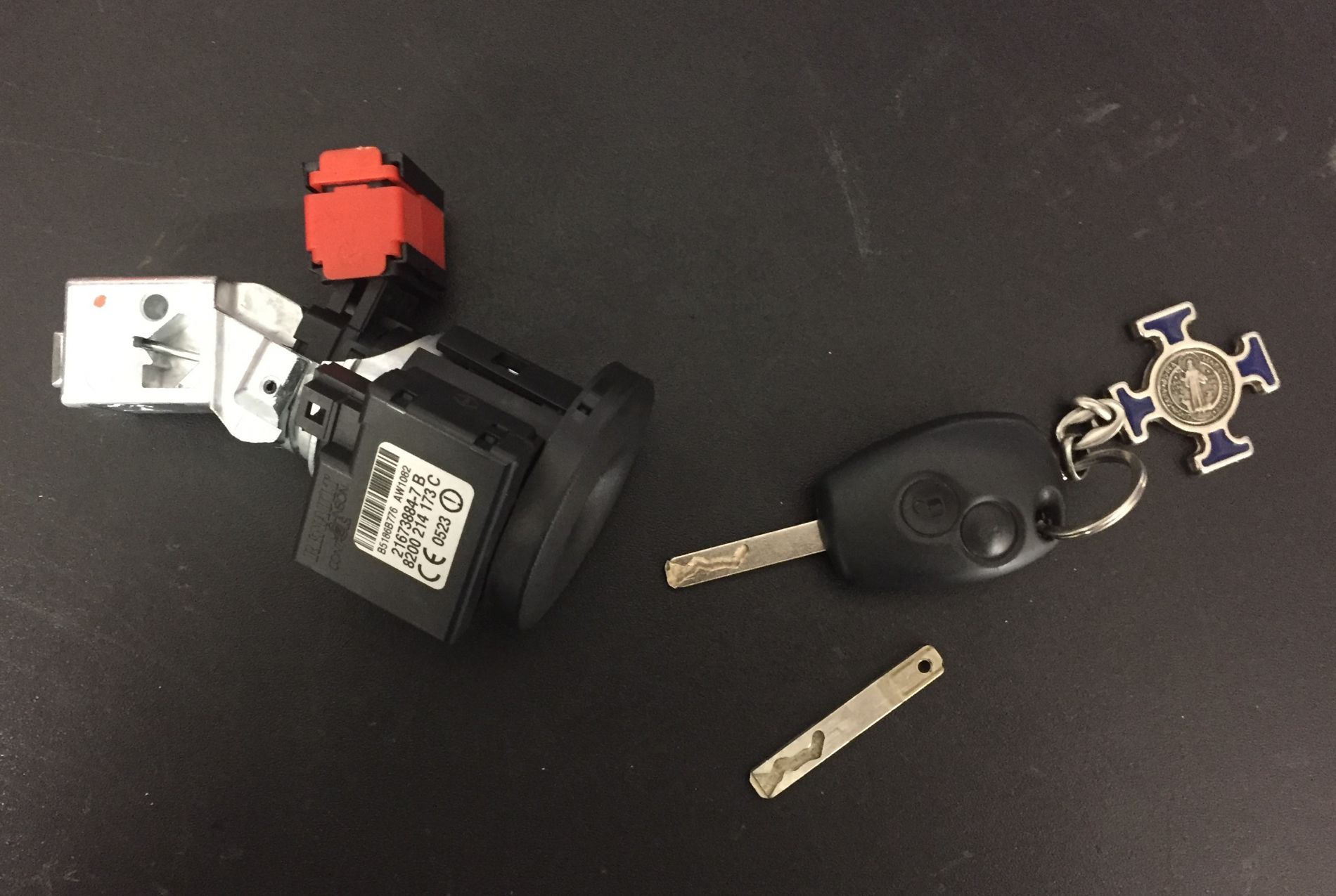 Dzisiaj naprawiliśmy stacyjkę w Renault Modus. Auto miało kłopoty z odpalaniem, a po rozebraniu stacyjki okazało się, że zniszczeniu uległ element wkładu stacyjki, który napędza kostkę elektryczną(zdjęcie nr.2). W związku z tym kostka nie ustawiała się w pozycji zapłonu. Wymieniliśmy stacyjkę na kompletnie nową i ułożyliśmy ją pod klucz klienta oraz docięliśmy nowy grot klucza, ponieważ orginalny grot klienta był już mocno zużyty.