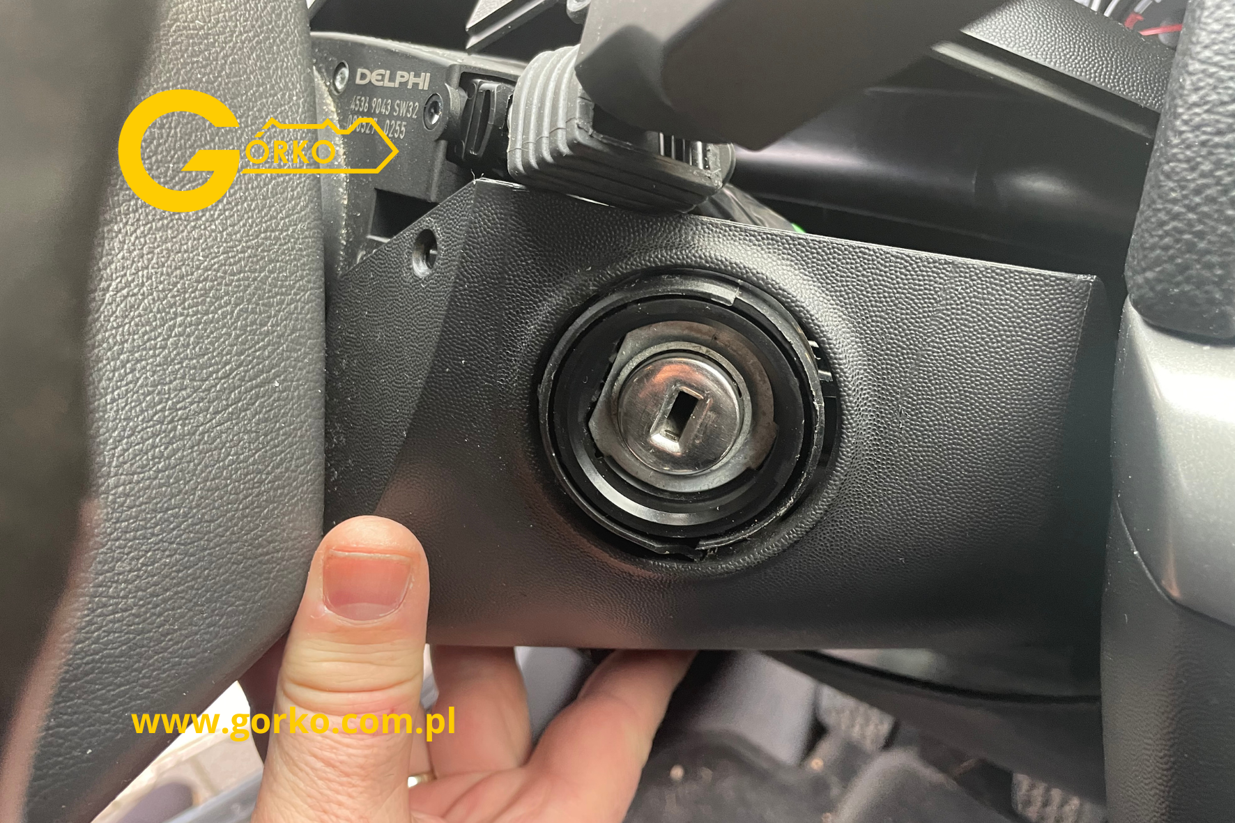 Pierwszym krokiem było wymontowanie wkładu stacyjki. Wymaga to odpowiednich narzędzi i wiedzy – demontaż przeprowadzamy ostrożnie, aby nie uszkodzić plastikowych elementów osłony kolumny kierowniczej.