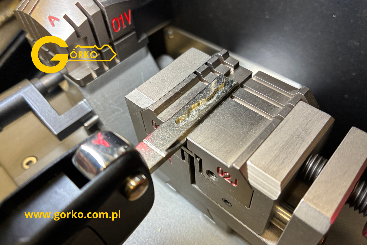 - nowy grot klucza (docięty na podstawie numeracji zapadek, dzięki czemu pasuje do zamków w samochodzie),