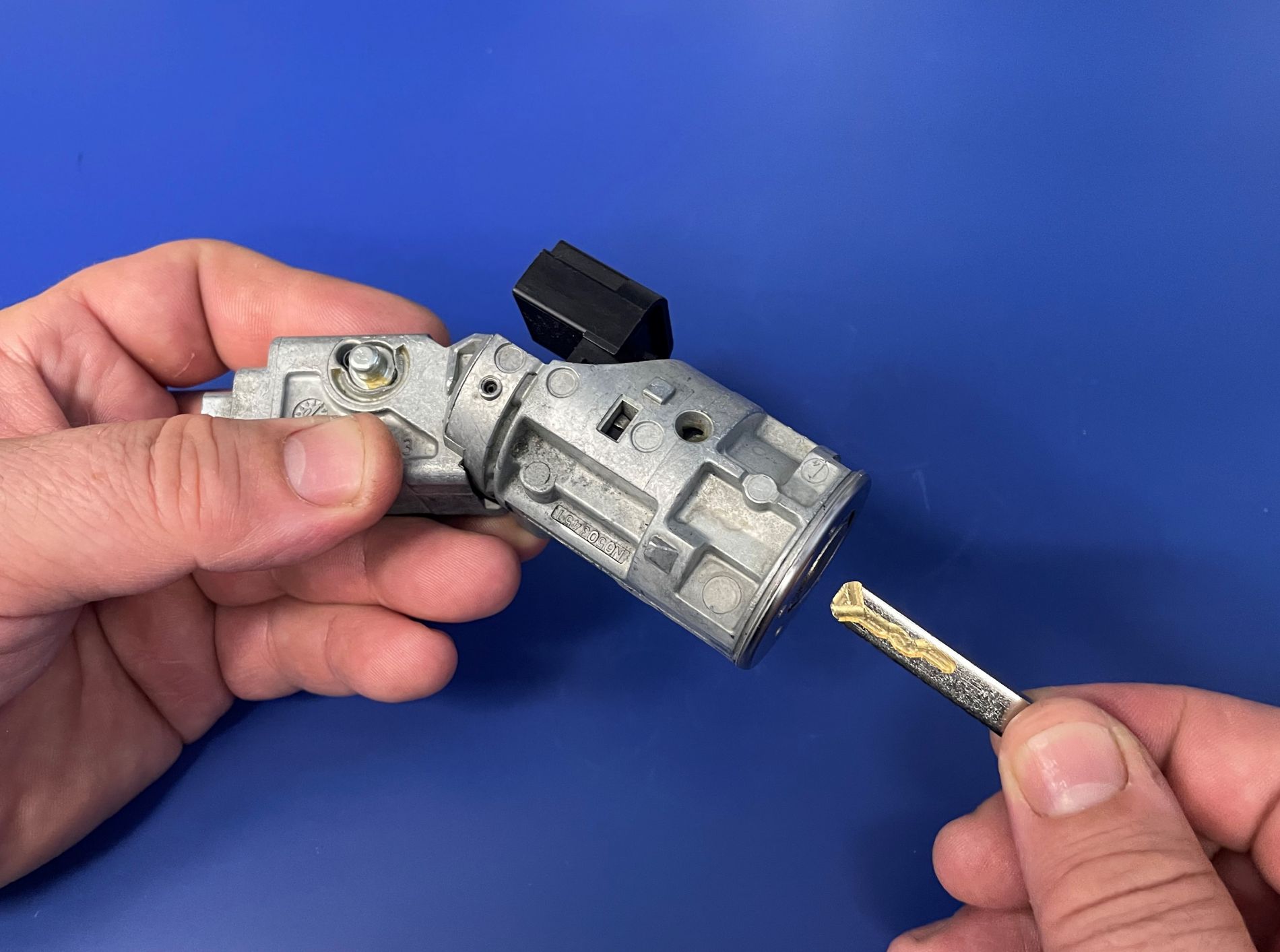 Rozmontowanie wkładu stacyjki – ostrożnie zdemontowaliśmy cały mechanizm, aby uzyskać dostęp do jego wnętrza.