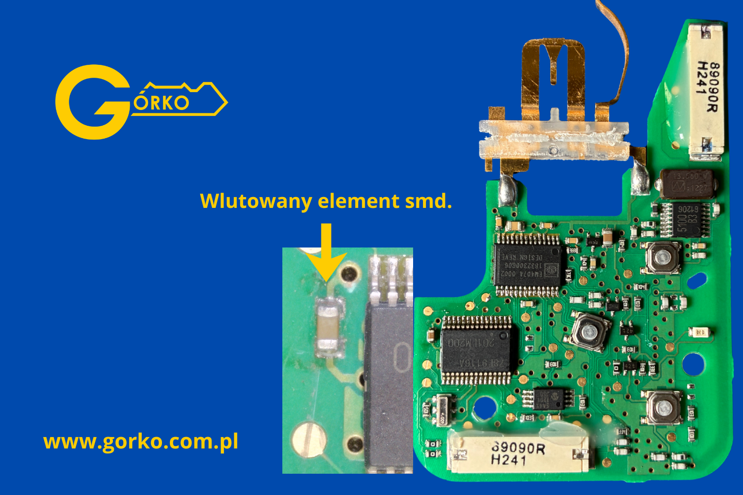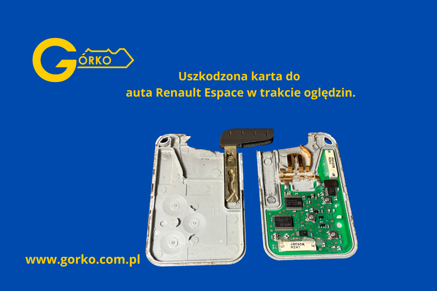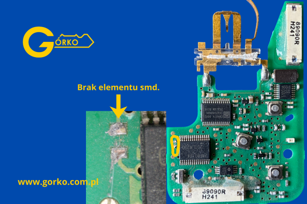 Podczas próby otwarcia starej, klejonej obudowy, doszło do zerwania drobnego elementu SMD. Efekt? Karta przestała emitować sygnał, a ponieważ był to jedyny klucz, a zamek mechaniczny w drzwiach był niesprawny – klient stracił dostęp do auta.